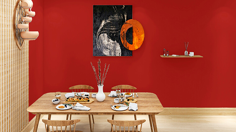 對(duì)繽紛色彩情有獨(dú)鐘,卻擔(dān)心室內(nèi)空間涂刷大面積的紅色,容易造成視覺疲勞或帶來過于激動(dòng)、緊張的情緒,大寶設(shè)彩家提出兩點(diǎn)用色建議: