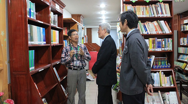 儀式后,陳總一行對(duì)學(xué)校進(jìn)行了參觀,由校長(zhǎng)陪同并向大家介紹了學(xué)校的相關(guān)情況。