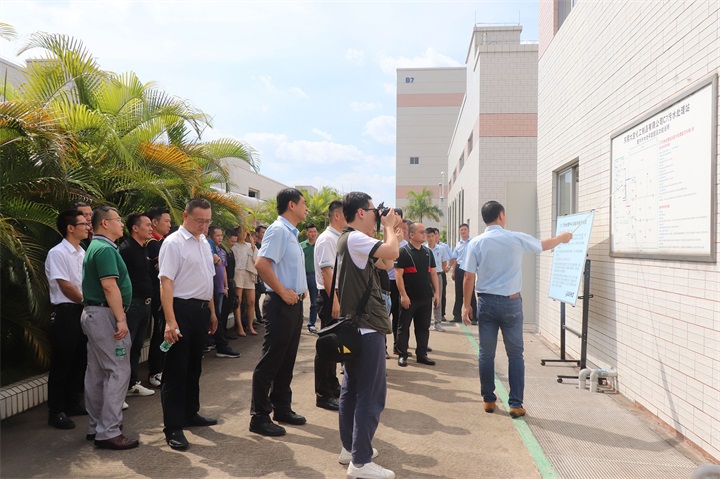 在張總的陪同下,廣東門協(xié)一行先后參觀了大寶化工廠區(qū)模型區(qū)、安管中心、智能涂裝線、污水處理中心和自動(dòng)倉(cāng)儲(chǔ)線,我司工作人員向參訪領(lǐng)導(dǎo)說明了各功能區(qū)域的作業(yè)流程和運(yùn)作情況。參觀過程中,張總向關(guān)會(huì)長(zhǎng)一行詳細(xì)介紹了大寶漆的發(fā)展歷程、產(chǎn)品體系、服務(wù)支持等。他強(qiáng)調(diào),大寶漆作為國(guó)內(nèi)環(huán)保涂料企業(yè)的標(biāo)桿,不僅為客戶提供高品質(zhì)的綠色涂料,同時(shí)也為客戶提供完善的涂裝服務(wù)和整體涂裝解決方案。