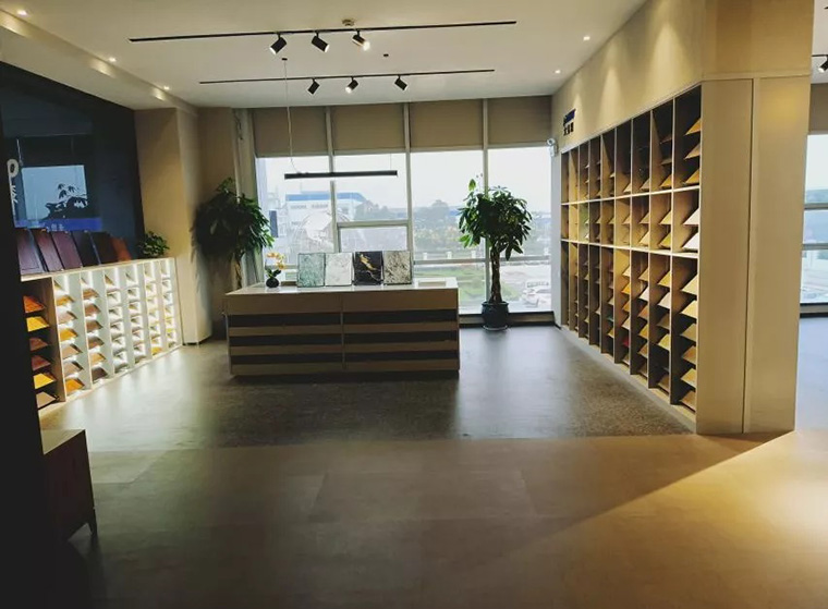 在弧形展廳左邊,分成兩個區域,一區是排列整齊劃一的色板區,想要帶給大家浸入式體驗和感知;
