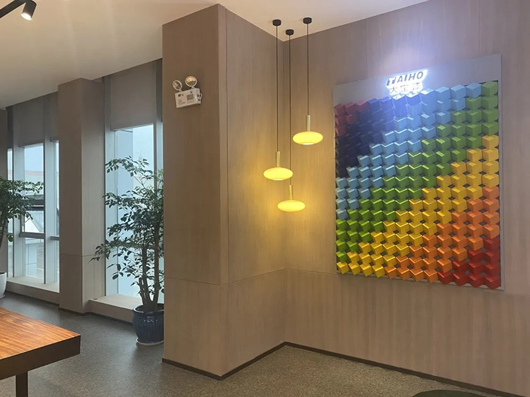 色彩中心陳列的色板涵蓋木器涂料、工業涂料、建筑涂料..等,以期讓觀者有難忘的色彩及空間體驗,但色彩變化過多易引起視覺疲勞進而達不到突出醒目的效果,因此大寶設計團隊秉持細致優雅、和諧唯美的色彩美學,將色彩與木質的融合呼應得淋淋盡致,創造出與客戶有共鳴的故事。
