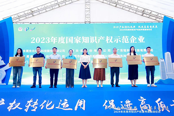 4月19日,知識產權轉化運用,促進高質量發展,2024年東莞市知識產權宣傳周啟動儀式在東莞市南城天安數碼城舉行,東莞大寶化工作為“國家知識產權示范企業”受邀參加啟動儀式。