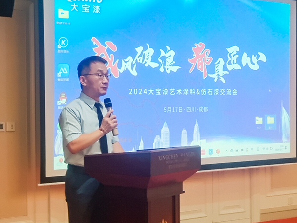 5月17日,大寶藝術(shù)涂料&仿石漆交流會(huì)在成都隆重召開(kāi)。會(huì)議以“成風(fēng)破浪 都具匠心”為主題,東莞大寶化工經(jīng)銷事業(yè)部副總經(jīng)理葉子琛,裝修漆銷售總監(jiān)張保中,西南區(qū)銷售總監(jiān)王華生,以及大寶漆四川省經(jīng)銷商等齊聚一堂共謀發(fā)展。