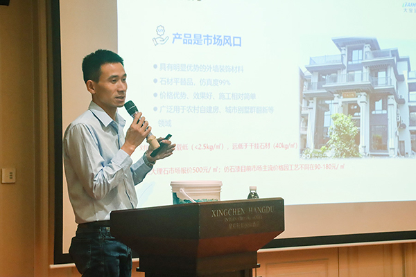 來(lái)自云南的龔向春分享了仿石漆市場(chǎng)推廣經(jīng)驗(yàn)。他結(jié)合云南地區(qū)的實(shí)際情況,詳細(xì)介紹了仿石漆在市場(chǎng)推廣中的策略、方法和取得的成果,為與會(huì)嘉賓提供了寶貴的市場(chǎng)推廣經(jīng)驗(yàn)和啟示。