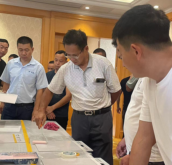 技術(shù)部周微老師為大家?guī)硭囆g(shù)涂料新品工藝的培訓,大家熱情高漲,積極參與,詳細記錄了各個工序環(huán)節(jié)的注意事項,60塊樣板全部現(xiàn)場制作完成。加強對經(jīng)銷商和施工人員的技術(shù)培訓,提高其對仿石漆的認知和施工技能,確保產(chǎn)品應(yīng)用效果。