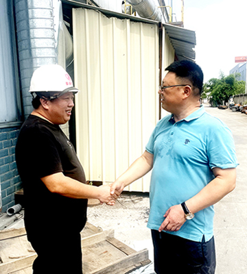 交流會后,泰錸公司廠長陪同大寶技術團隊考察車間的涂裝工序。鄭總全程參與了從白坯處理、拋丸程度到涂裝效果等每個環節的細節,進行深入交流與指導,并強調環保與員工健康防護的重要性。