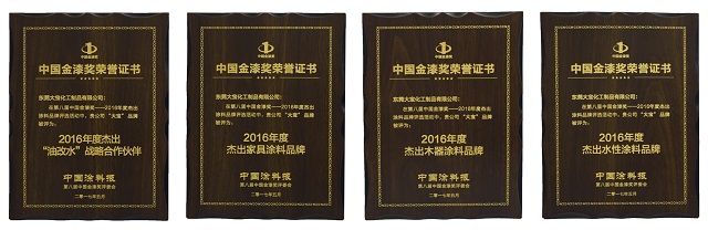 近幾年,受到國內(nèi)市場經(jīng)濟(jì)下行、環(huán)保法令日趨嚴(yán)格的影響,整個(gè)涂料行業(yè)的日子都不好過,但大寶漆抓住轉(zhuǎn)型契機(jī),在家裝企業(yè)的技術(shù)改造和產(chǎn)品升級(jí)中,提供一體化的綠色環(huán)保涂裝解決方案,特別是在油漆向水性漆、UV涂料等環(huán)保涂料轉(zhuǎn)型升級(jí)取得突出貢獻(xiàn)。此次獲得多項(xiàng)大獎(jiǎng),既是行業(yè)和客戶對(duì)大寶漆的品質(zhì)及所做努力的肯定,更是一種鞭策和責(zé)任。
