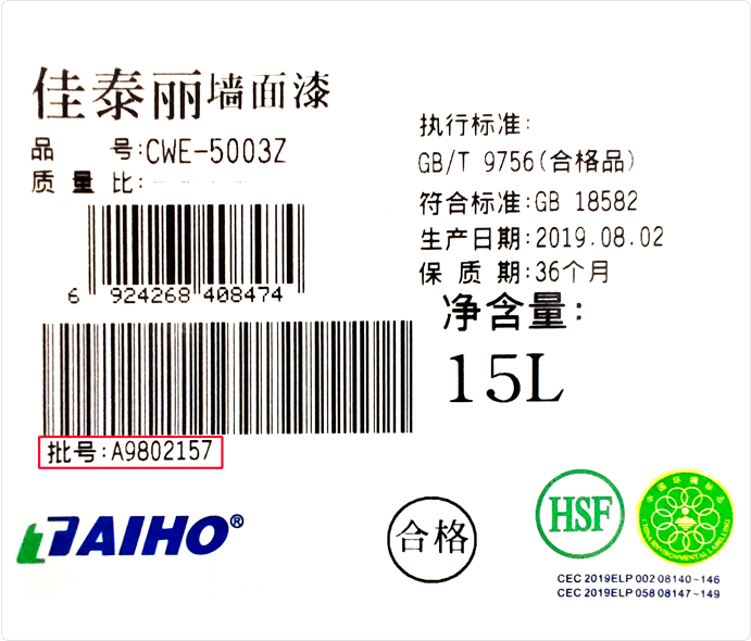 敬請廣大消費(fèi)者認(rèn)真大寶漆產(chǎn)品外包裝標(biāo)簽打印字體清晰,信息完整,無破壞、缺損或重復(fù)黏貼的痕跡。